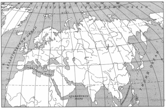 Заштрихуйте на контурной карте один четырёхугольник, образованный градусной сеткой (параллелями и меридианами), в котором полностью или частично располагалась страна, указанная в выбранной Вами теме.