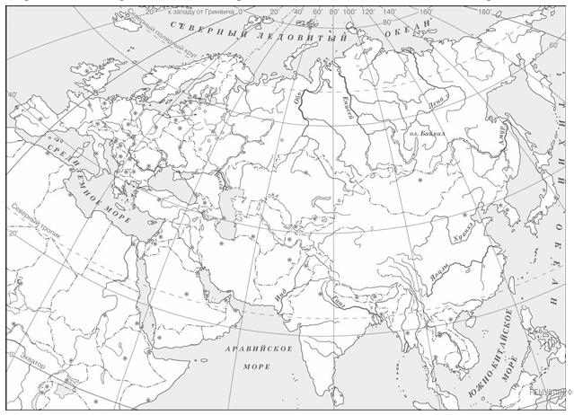 Заштрихуйте на контурной карте один четырехугольник, образованный градусной сеткой (параллелями и меридианами), в котором полностью или частично находится река Нил.